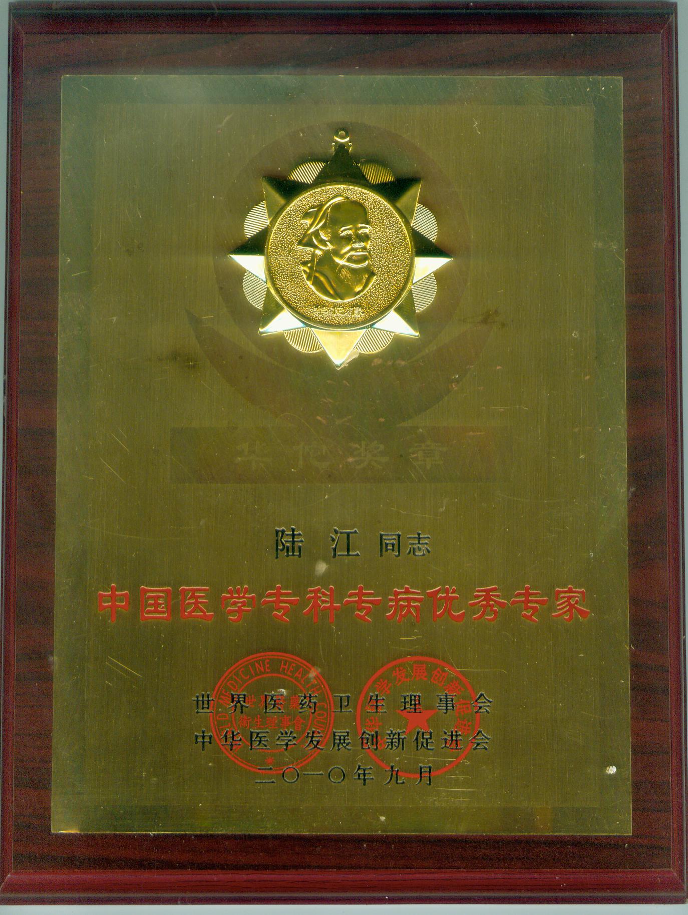 陸江獲得中國醫(yī)學(xué)專科專病優(yōu)秀專家恃別貢獻(xiàn)獎
