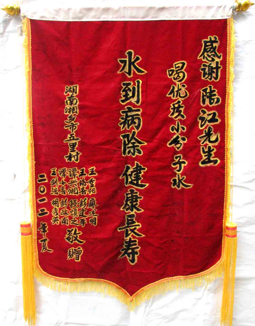 2015年潘志山主動寫一篇感想《我以親身實踐打破了冠心病、高血壓、糖尿病需終生服藥的神話》說堅持按發(fā)明人陸?江先生倡導(dǎo)的用已饑方食的方法合理膳食,我的健康狀況越來越好:糖尿病造成的視力下降有了明顯的恢復(fù),末梢神經(jīng)炎導(dǎo)致的指端潰爛現(xiàn)在完全痊愈,痔瘡自從飲用微小分子團(tuán)水半年后就再也沒有復(fù)發(fā)過,氣滯血瘀造成的嘴唇暗紫也漸漸變得紅潤,舌下靜脈黑紫消失,足背的動脈由以前的隱約感到跳動現(xiàn)在變得清晰有力。[13]潘先生披露的訣竅,一是飲用微小分子團(tuán)水給脫水細(xì)胞補(bǔ)水,二是已饑方食”養(yǎng)生智慧,患者都能做到。